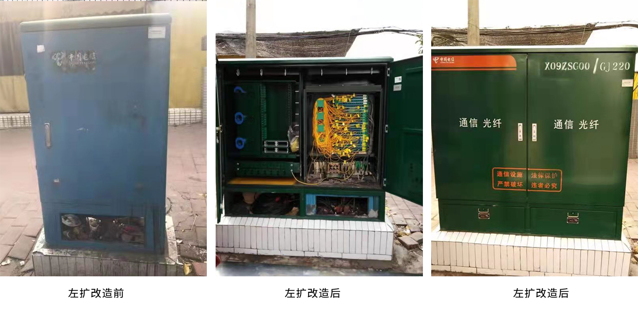 除光電一體化交接箱"全光化〃改造,我司技術(shù)同能應(yīng)用于光纜交接箱原址擴(kuò)容〃中,因地制宜,向上、向后、向左右進(jìn)行方案設(shè)計(jì),以達(dá)到客戶效益最大化。